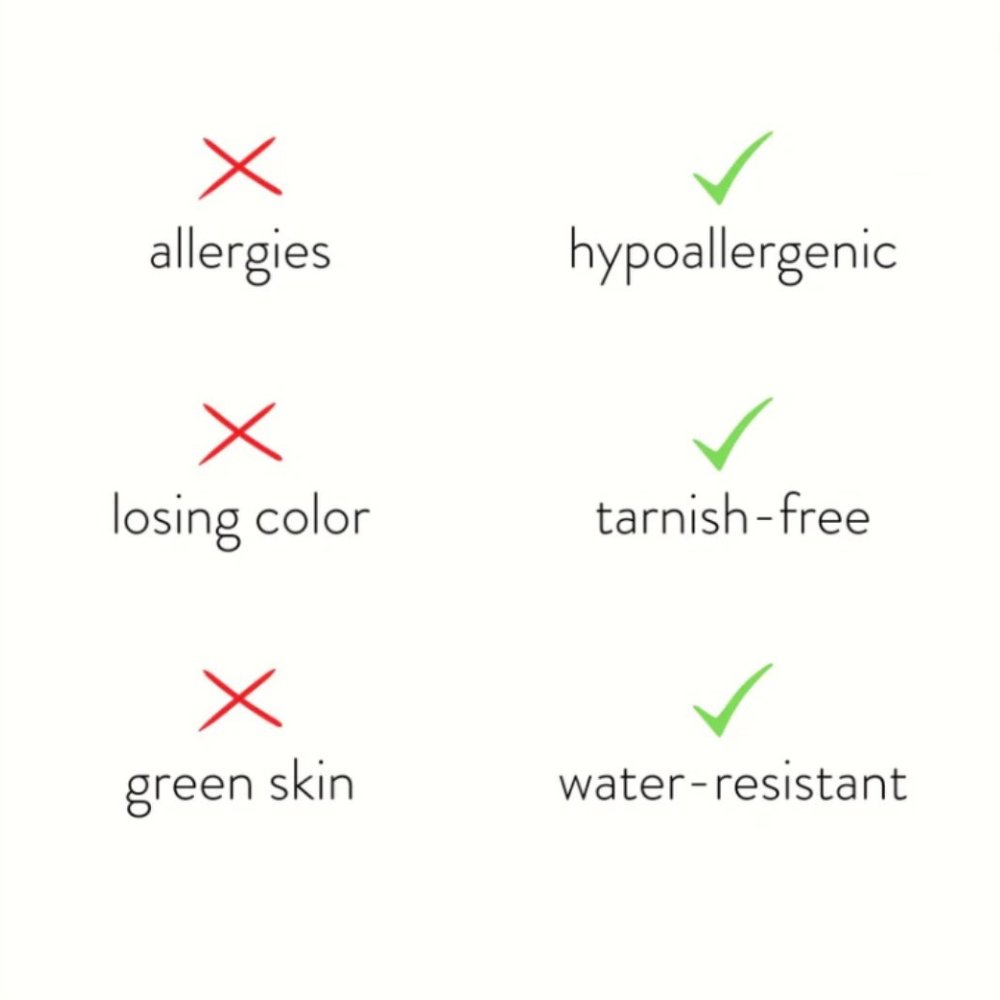 Materials: All our jewellery is hypoallergenic and suitable for everyone — even those with sensitive skin.